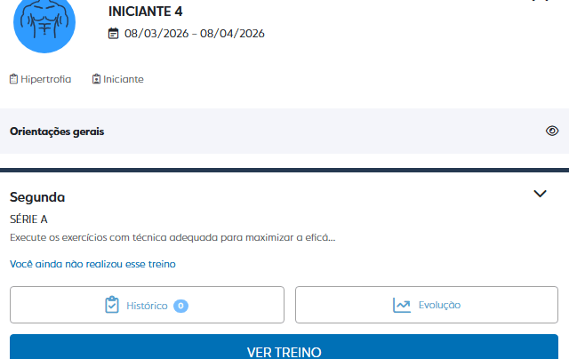 Por meio dessa plataforma, cada aluno tem acesso a um aplicativo intuitivo onde recebe seu programa de treinamento individualizado, com demonstrações de exercícios, controle de cargas, registro de evolução e comunicação direta com o professor.